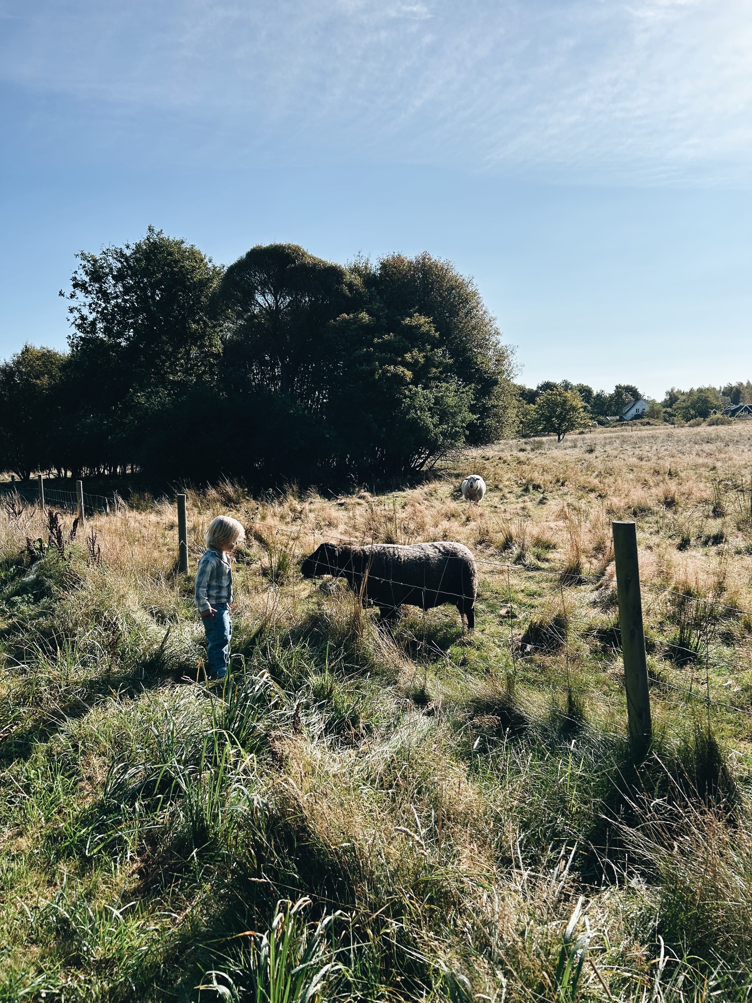 Jag kan inte fokusera. Tankarna vandrar som en explosion. Behöver komma ut. Drog på stövlarna och svepte regnjackan om mig. Promenerade sakta bort till kohagen. Plockade små äpplen. Gick tillbaka till fårhagen. Blev välkomnad av fåren som glatt glufsade i sig frukten.